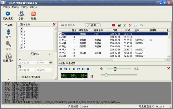 将电话线、网线、电源全部接好后,开启录音服务器端的软件,保持网络畅通,STLAN网络型数字录设备就可以独立工作了。