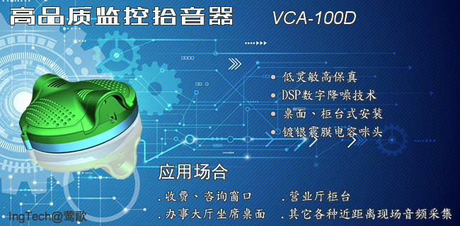 VCA-100D专为小范围、近距离声音采集而设计,灵敏度较低,采用高品质的音头。