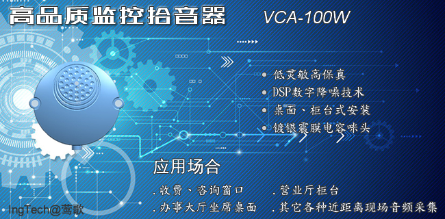 VCA-100W专为小范围、近距离声音采集而设计,灵敏度较低,采用高品质的音头。