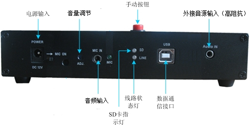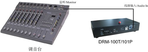DRM-100T数字录音设备适合具有会议系统的会场,从各种会议系统(调音台等)的音频输出(带前置放大)获取模拟信号音,DRM-100T是DRM-101P的简化版,去除了外录功能。