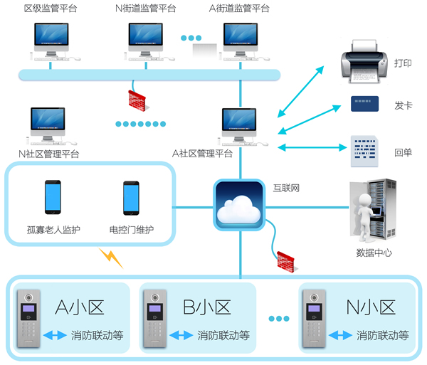 (3)系统平台可同时监控、管理本小区内相关单元智能终端的工作状态和人员 进出实时信息,并可通过智能卡对常住人员、外来人员、境外人员开门信息进行采 集、传输和分类管理。
