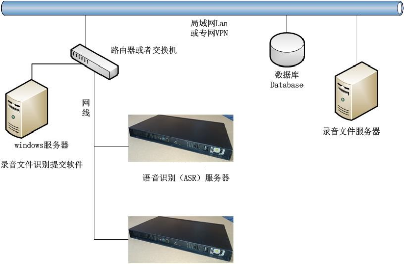 在内网部署一至多台雨燕电子语音识别服务器;找一台运行windows系统的电脑,运行雨燕电子或第三方生成的录音文件提交识别软件。